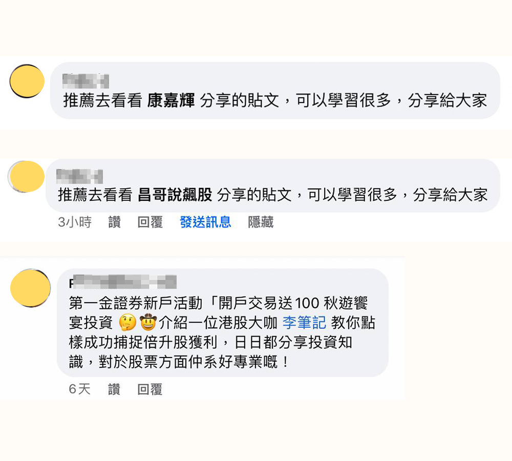 案例二:在官方粉絲專頁下留言,勸誘加入飆股社團