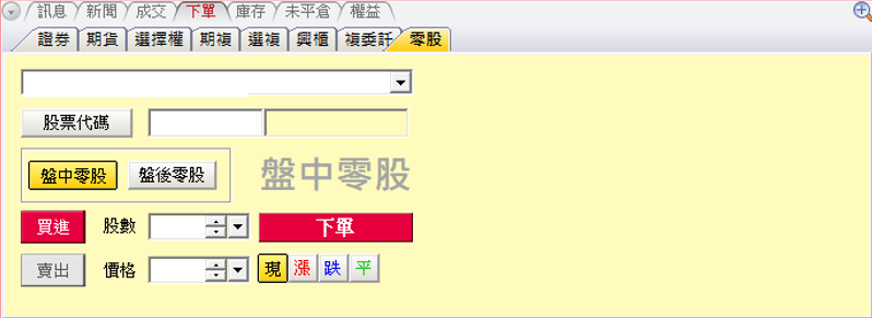 新增【零股】TAB,盤別按鈕只提供:盤中零股、盤後零股