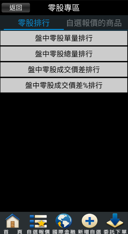 2.零股專區: 可查看4種零股排行以及零股自選股