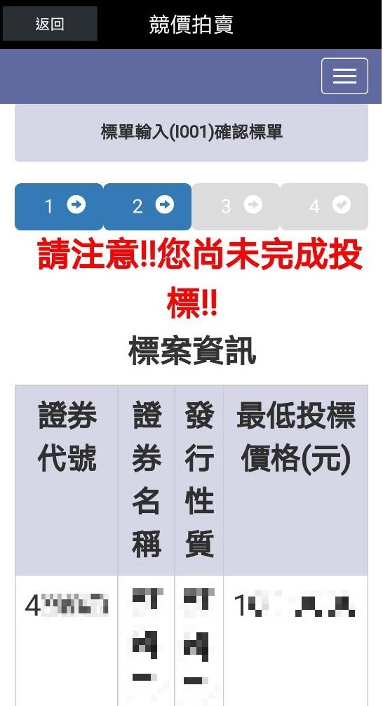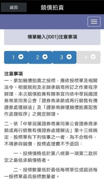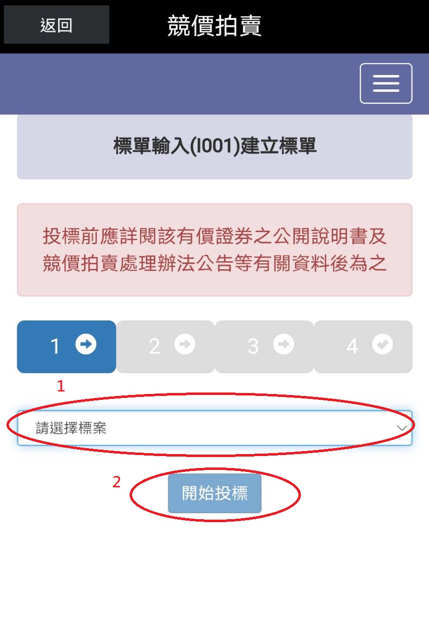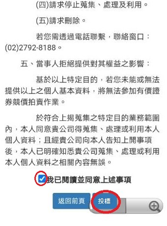 閱讀注意事項,打勾並按下投標,完成投標流程